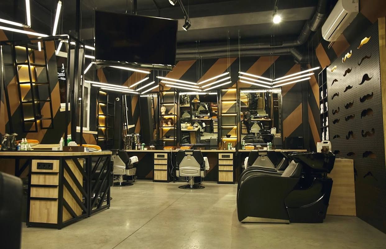 Сучасний дизайн салону дозволяє майстрам продуктивно і професійно виконувати свою роботу. Це є нашою відмітною рисою і привабливою особливістю для всіх наших гостей. Вісім перукарських крісел ідеально розміщені, висвітлені і дозволяють барберам виконувати стрижки, укладки і гоління на найвищому професійному рівні.